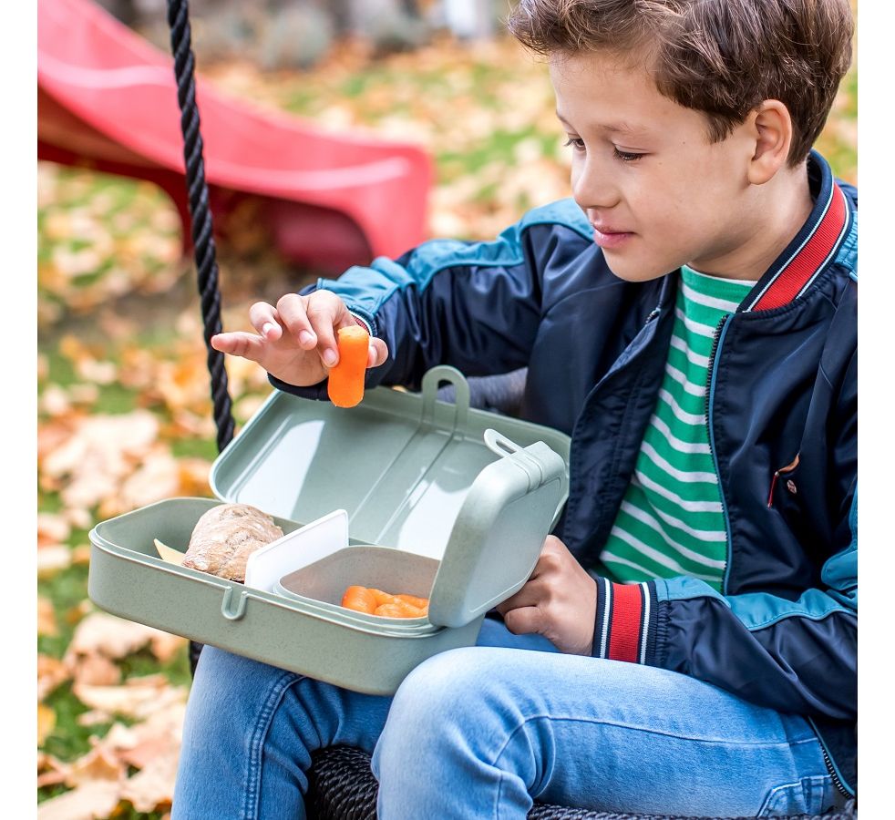 Ланч-бокс PASCAL L – вместительная коробка для школьных обедов или перекусов на работе. За счет обтекаемой формы и плавных линий емкость можно переносить в сумке или рюкзаке без риска повредить тетради, документы или другие важные предметы. Бокс вмещает бутерброды, орехи, печенье, фрукты и другие закуски. Изготовлен из органического материала на основе целлюлозы, не содержит формальдегидов, бисфенола А. Ланч-бокс можно мыть в посудомоечной машине.