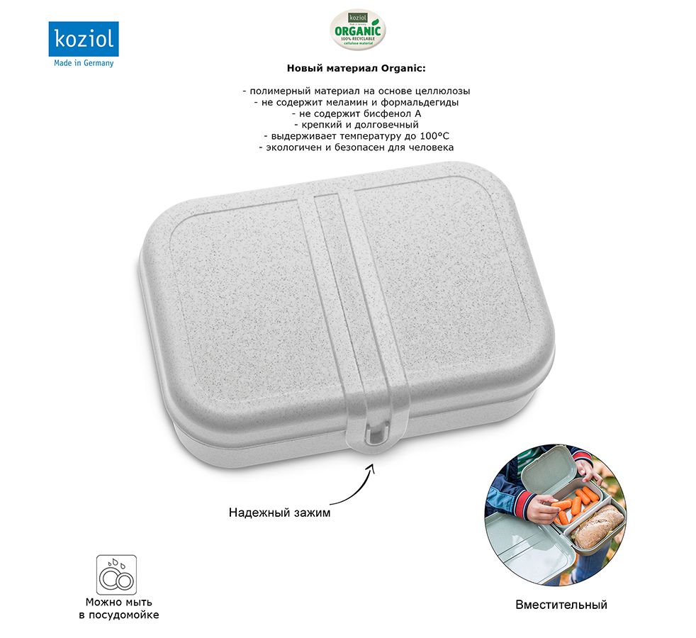 Ланч-бокс Pascal, Organic, 23,3х6,7х17 см, серый, Koziol
