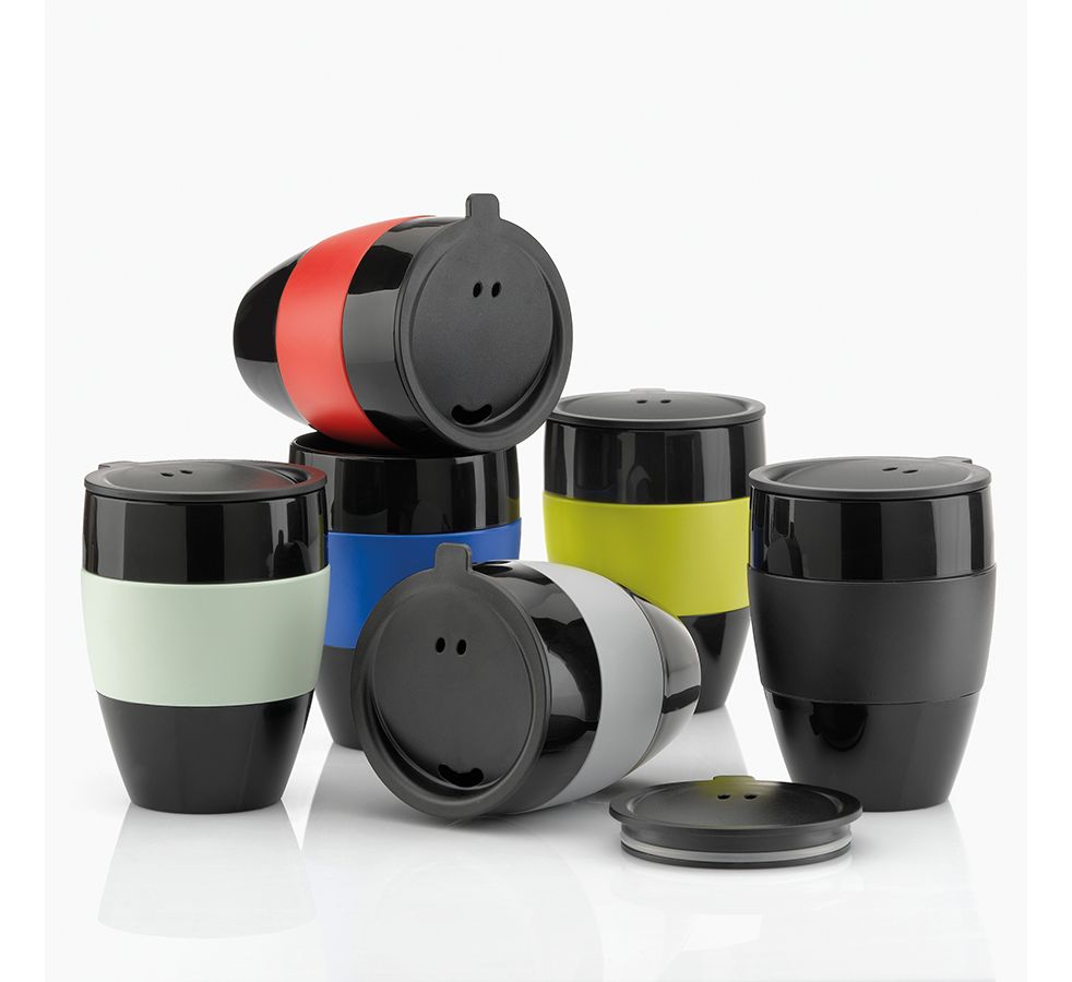 Термокружка Aroma To Go из термопластика сохранит температуру горячего кофе, но при этом её поверхность не нагреется и не будет обжигать ладони. Плотная крышка не даст расплескать напиток.