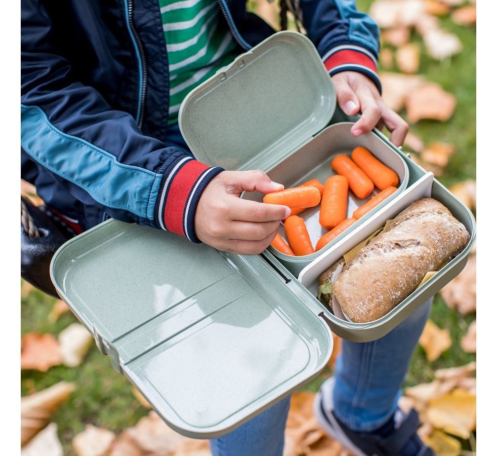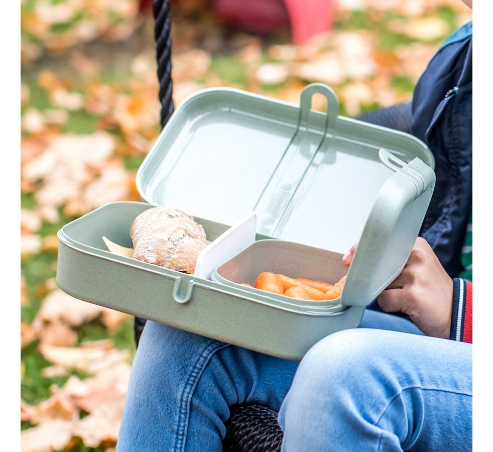 Ланч-бокс PASCAL L – вместительная коробка для школьных обедов или перекусов на работе. За счет обтекаемой формы и плавных линий емкость можно переносить в сумке или рюкзаке без риска повредить тетради, документы или другие важные предметы. Бокс вмещает бутерброды, орехи, печенье, фрукты и другие закуски. Изготовлен из органического материала на основе целлюлозы, не содержит формальдегидов, бисфенола А. Ланч-бокс можно мыть в посудомоечной машине.
