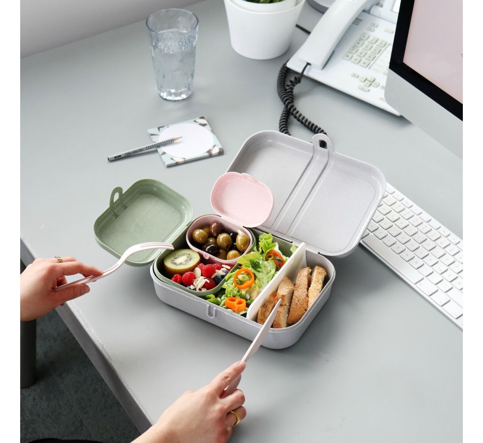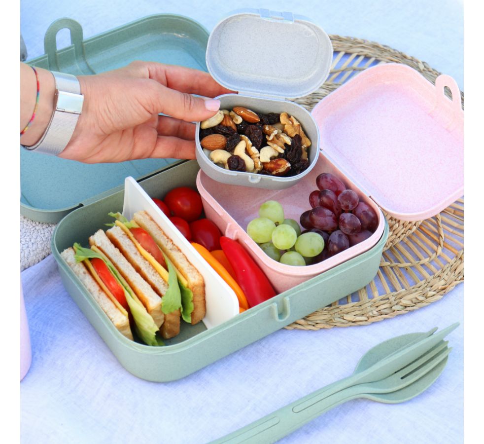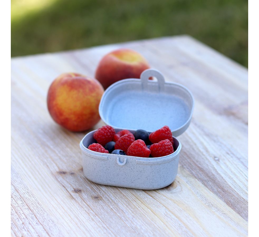 Ланч-бокс Pascal MINI – компактная коробка для школьных обедов или перекусов на работе. За счет обтекаемой формы и плавных линий емкость можно переносить в сумке или рюкзаке без риска повредить тетради, документы или другие важные предметы. Бокс вмещает орехи, печенье, фрукты и другие закуски. Изготовлен из органического материала на основе целлюлозы, не содержит формальдегиды, бисфенол-А. Ланч-бокс можно мыть в посудомоечной машине.