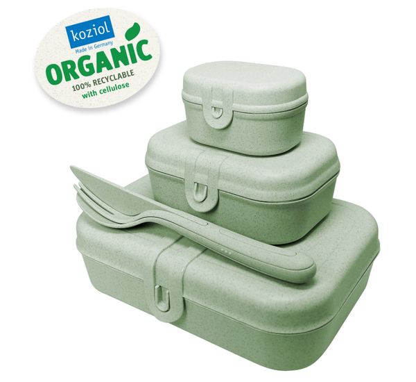 Набор ланч-боксов и столовых приборов Pascal, Organic, зеленый, 3 шт., Koziol