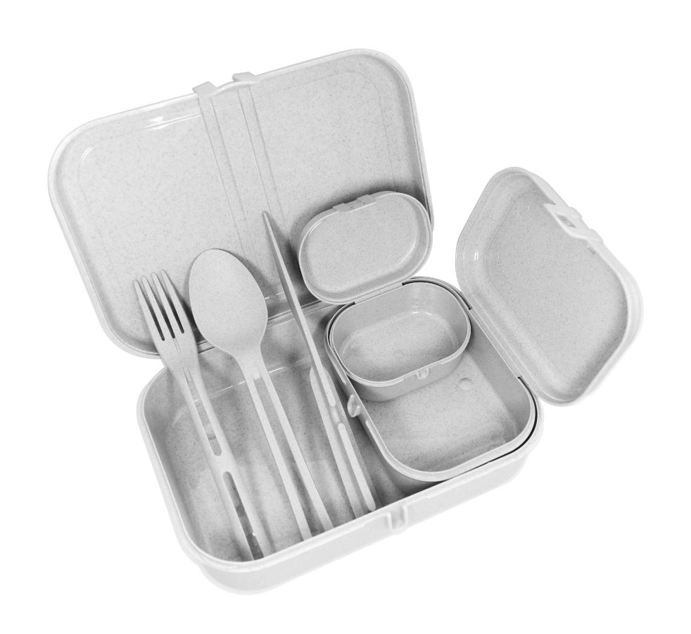 Набор из 3 ланч-боксов и столовых приборов PASCAL Organic – идеальный вариант для путешествий и пикников. Емкости разного объема вмещают бутерброды, орехи, печенье, фрукты и другие закуски. Также в комплектацию входят столовые приборы Klikk, которые складываются один в один, не занимая много места. Все элементы выполнены из экологически чистого и пригодного для вторичной переработки материала, созданного на основе целлюлозы и термопластика. Благодаря этому изделия безопасны для пищевых продуктов и отличаются прочностью и долговечностью.