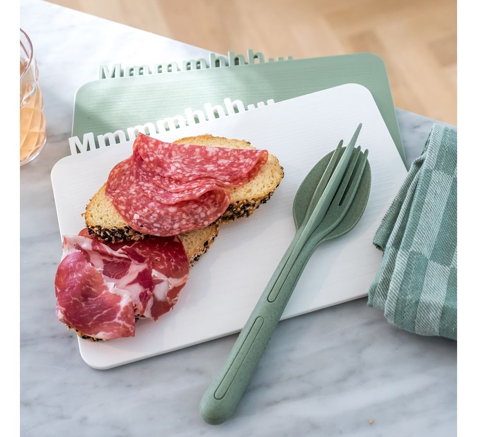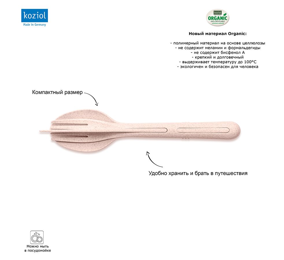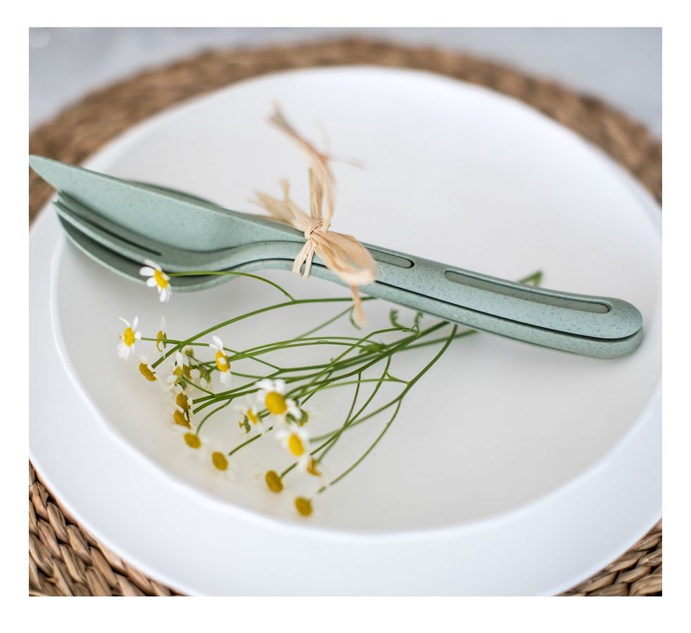 Набор из 3 столовых приборов Klikk – это уникальные изделия, изготовленные из органического материала на основе целлюлозы – экологически чистого, нетоксичного, не содержащего формальдегида и бисфенола А. Преимущество набора в его компактности: все три прибора складываются в один, не занимая много места в дорожной сумке. Идеальный вариант для путешествий и пикников!