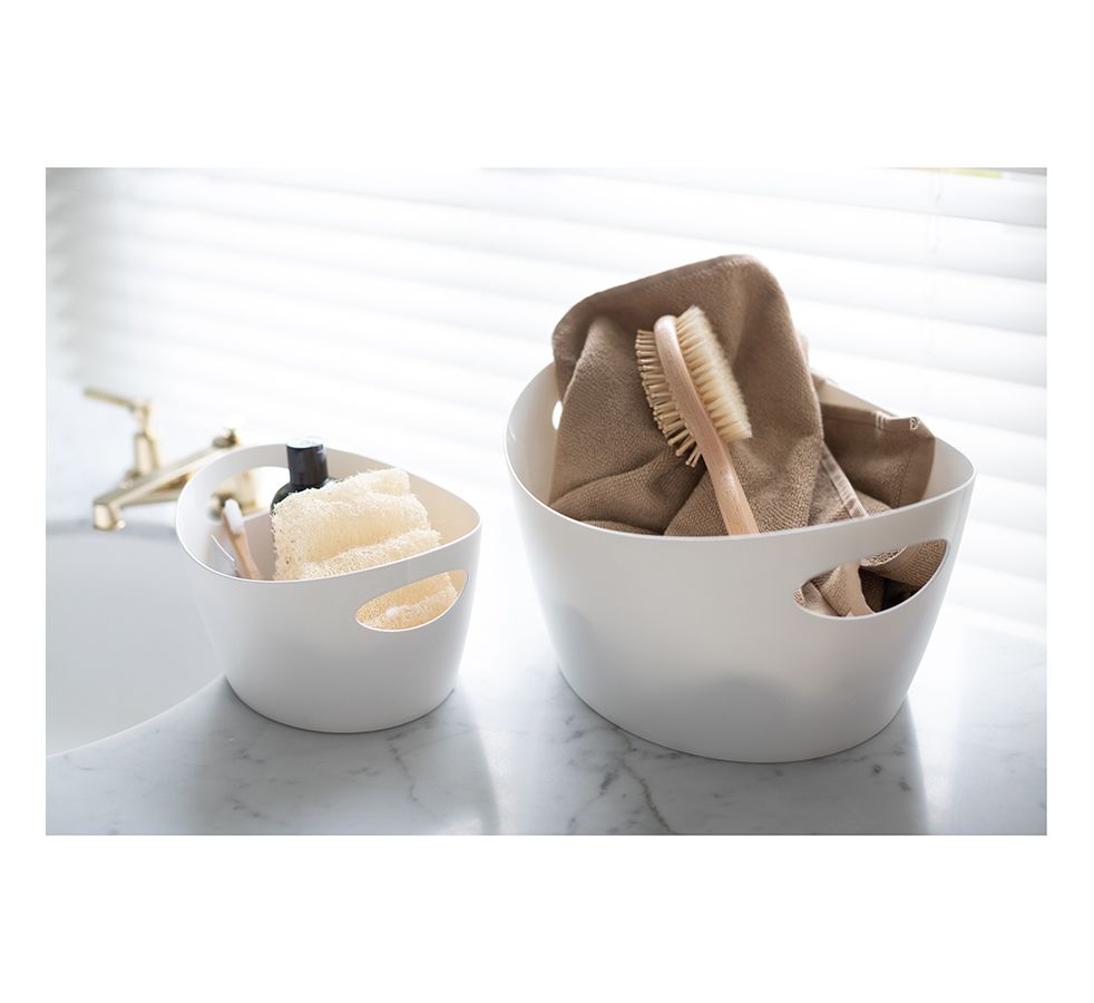 Вместительный органайзер с удобными ручками подходит для хранения и переноски белья, банок со специями, игрушек и прочих аксессуаров.