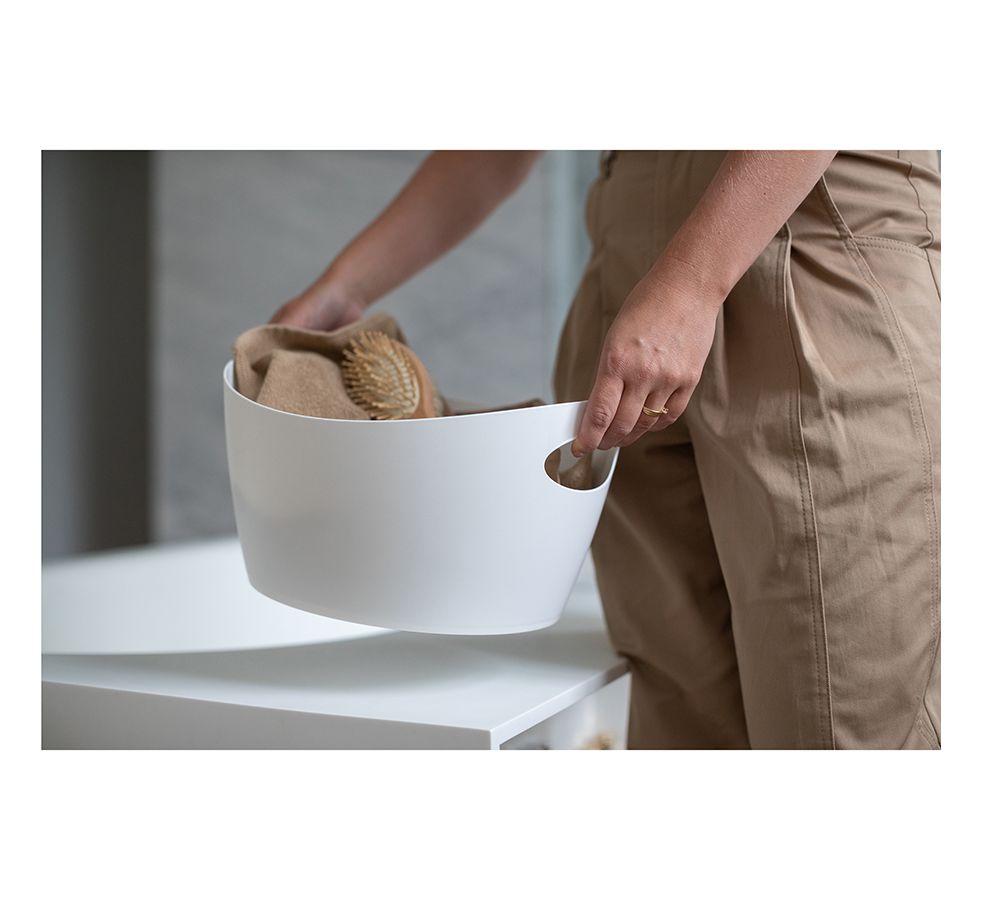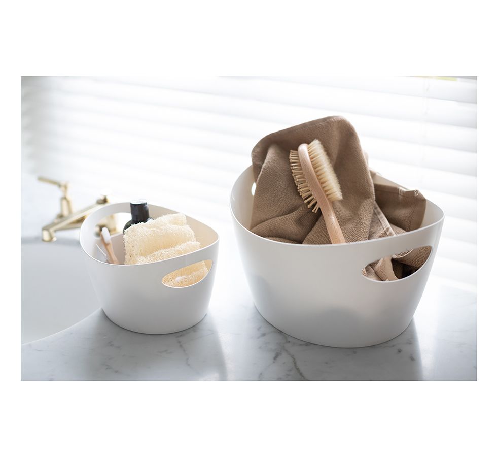 Вместительный органайзер с удобными ручками подходит для хранения и переноски белья, банок со специями, игрушек и прочих аксессуаров.