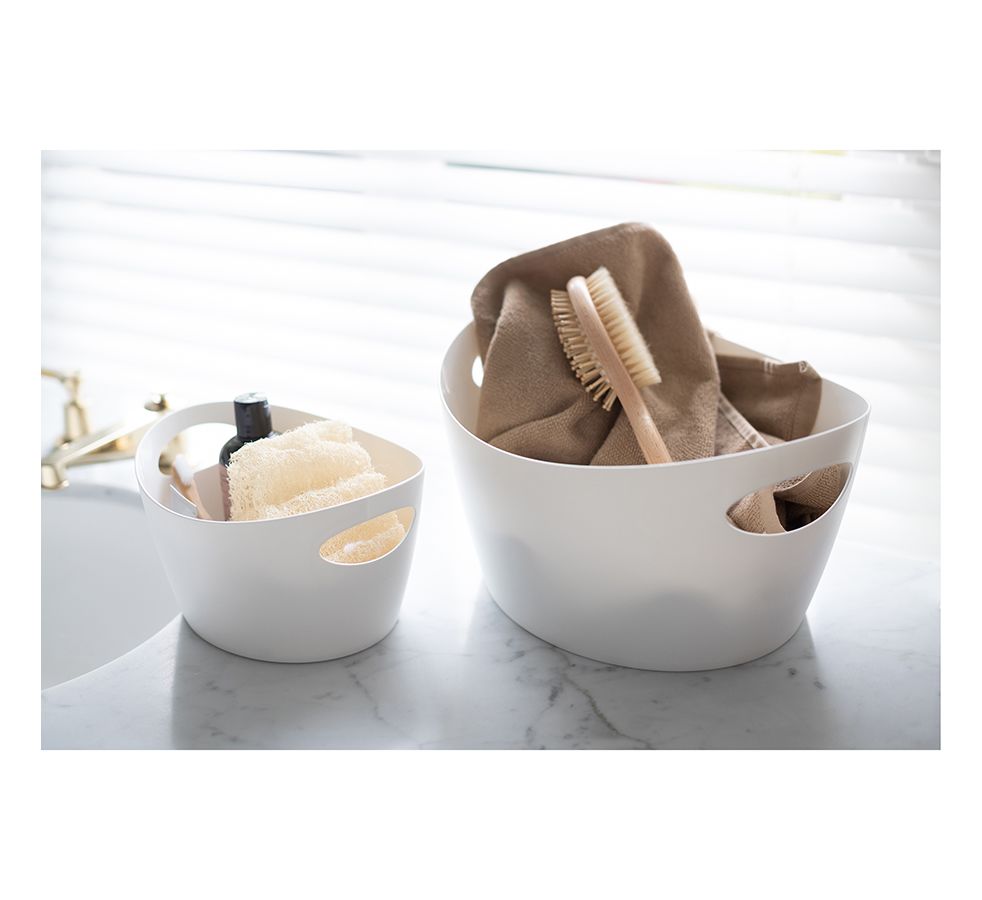 Вместительный органайзер с удобными ручками подходит для хранения и переноски белья, банок со специями, игрушек и прочих аксессуаров.