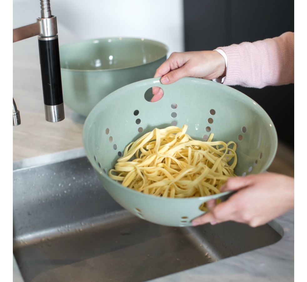 Дуршлаг Palsby L – вместительная посуда для мытья фруктов, овощей, зелени, макарон. Специально продуманная конструкция с боковыми отверстиями позволяет удобно держать изделие во время работы. Материал изготовления на основе целлюлозы – экологически чистый, нетоксичный, не содержит формальдегиды и других вредных соединений. Дуршлаг можно мыть в посудомоечной машине.