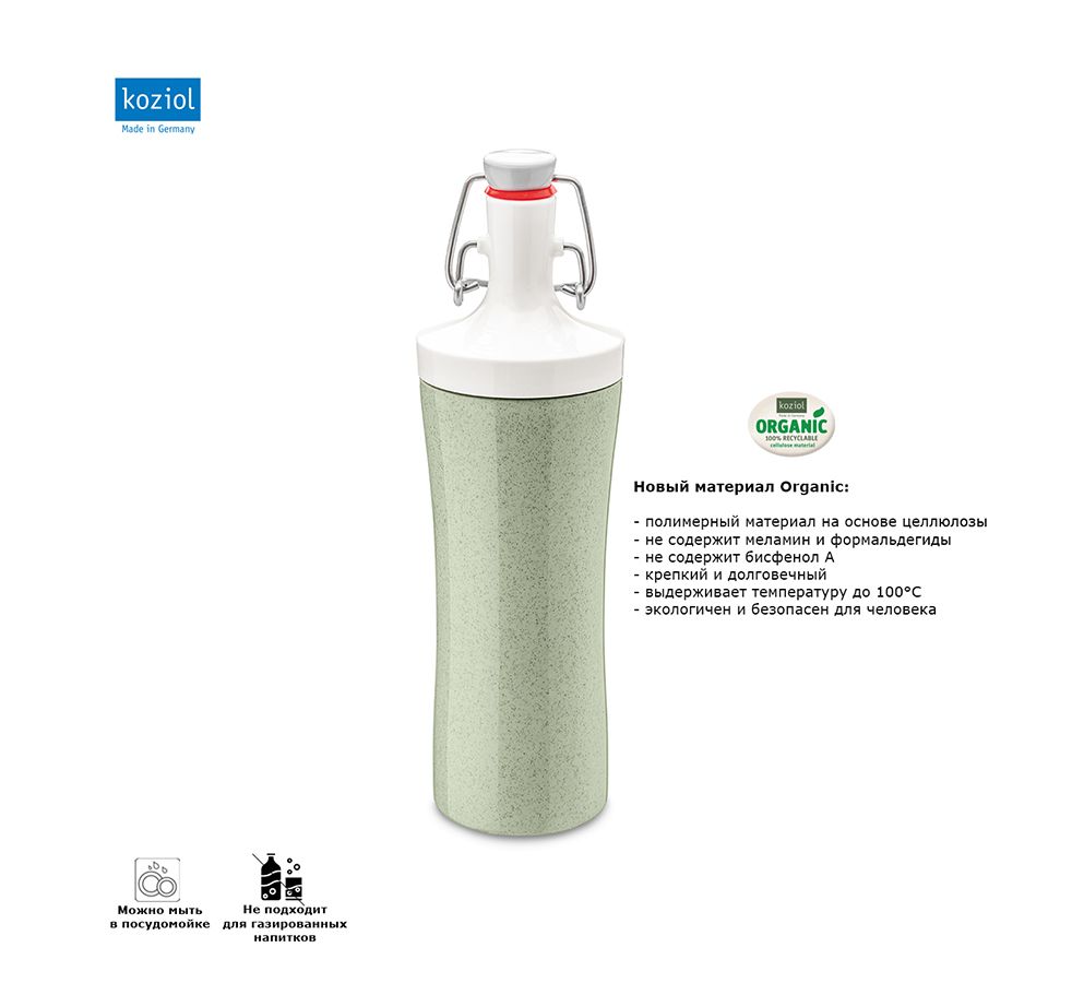 Бутылка для воды Plopp To Go, Organic, 425 мл, зеленая, Koziol