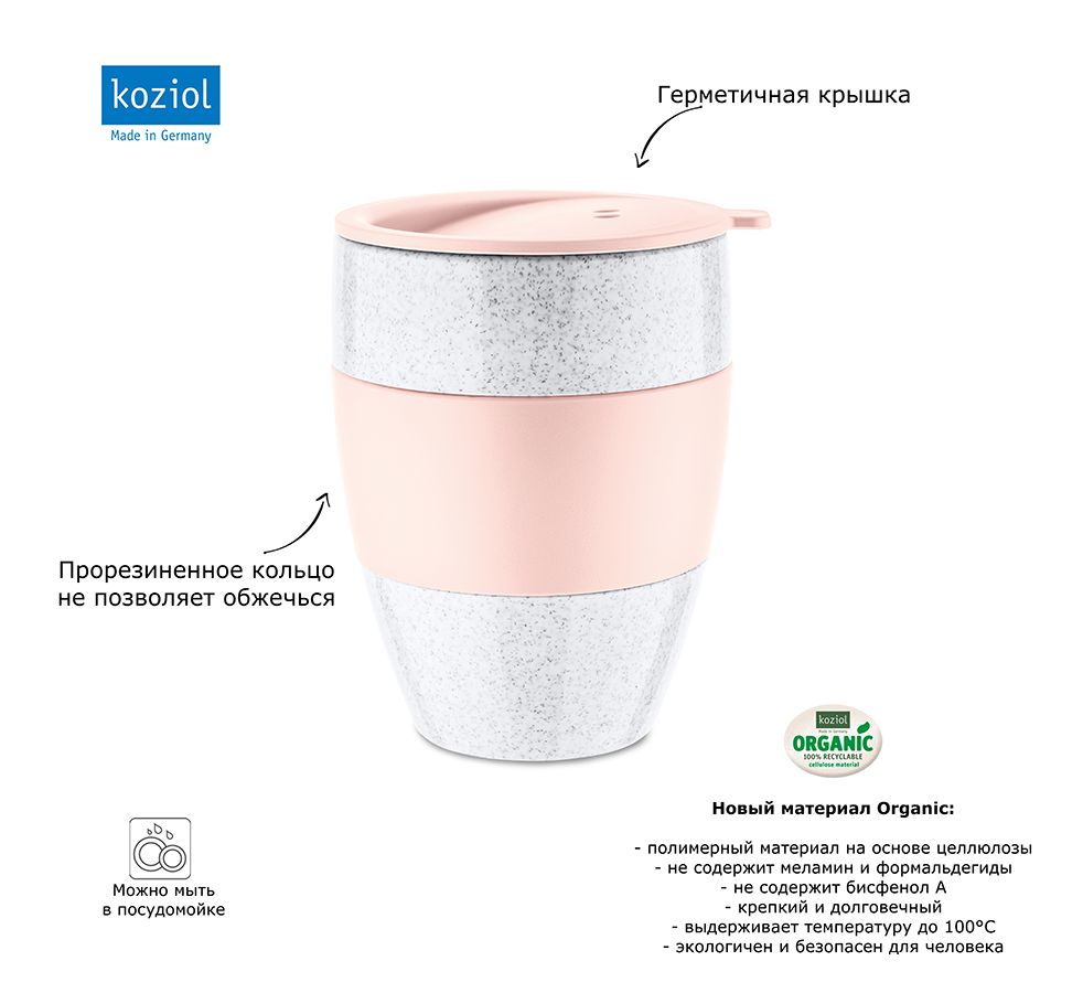 Термокружка Aroma To Go, Organic, 400 мл, розовая, Koziol