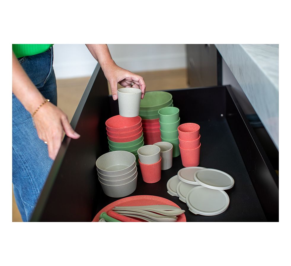 Можно мыть в посудомоечной машине без использования агрессивных средств и нейтрализатооов запаха: они вызывают обесцвечивание пластика. Если размер позволяет, лучше размещать в верхней секции. Даже если пластик помялся в процессе мытья, через время он восстановит форму. Такие продукты, как помидоры, морковь, яйца, шпинат, черника и свекла могут окрашивать воду в посудомойке и вызывать изменение цвета изделия. Чтобы избежать этого, рекомендуется ополаскивать его перед тем, как загружать в посудомойку. Избавиться от пятен можно, подвергнув изделие воздействию света.