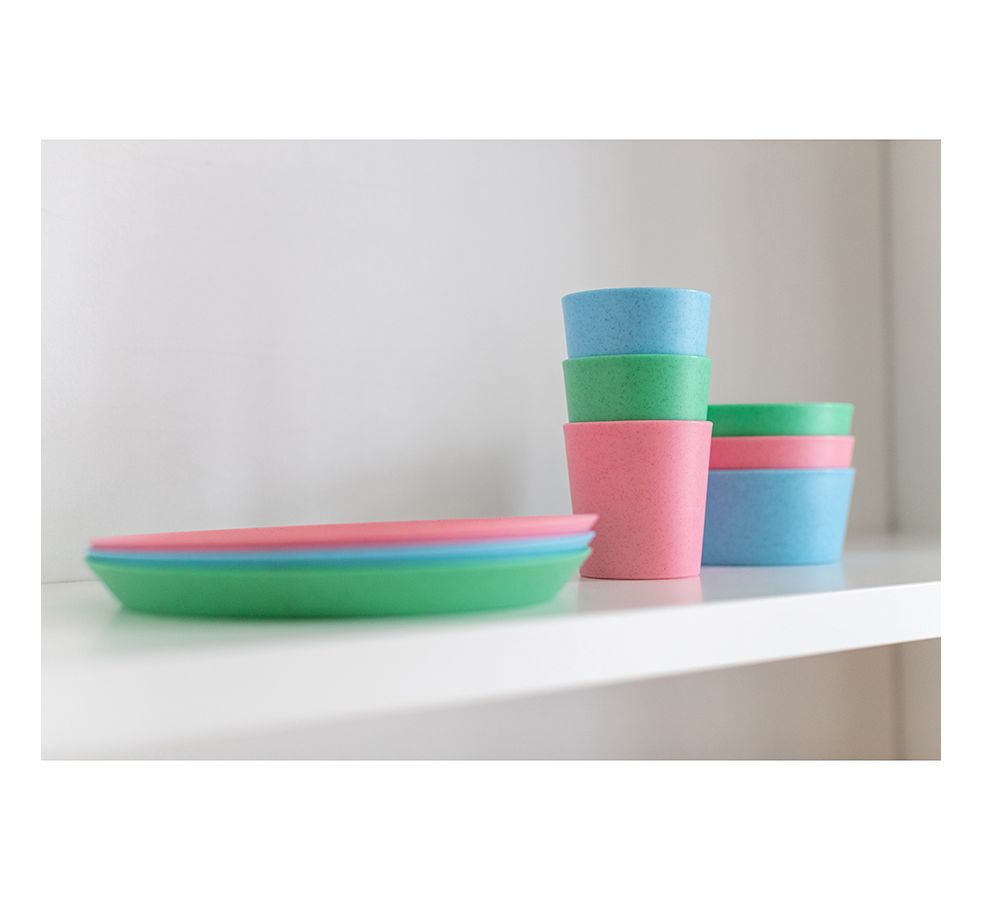 Можно мыть в посудомоечной машине без использования агрессивных средств и нейтрализатооов запаха: они вызывают обесцвечивание пластика. Если размер позволяет, лучше размещать в верхней секции. Даже если пластик помялся в процессе мытья, через время он восстановит форму. Такие продукты, как помидоры, морковь, яйца, шпинат, черника и свекла могут окрашивать воду в посудомойке и вызывать изменение цвета изделия. Чтобы избежать этого, рекомендуется ополаскивать его перед тем, как загружать в посудомойку. Избавиться от пятен можно, подвергнув изделие воздействию света.