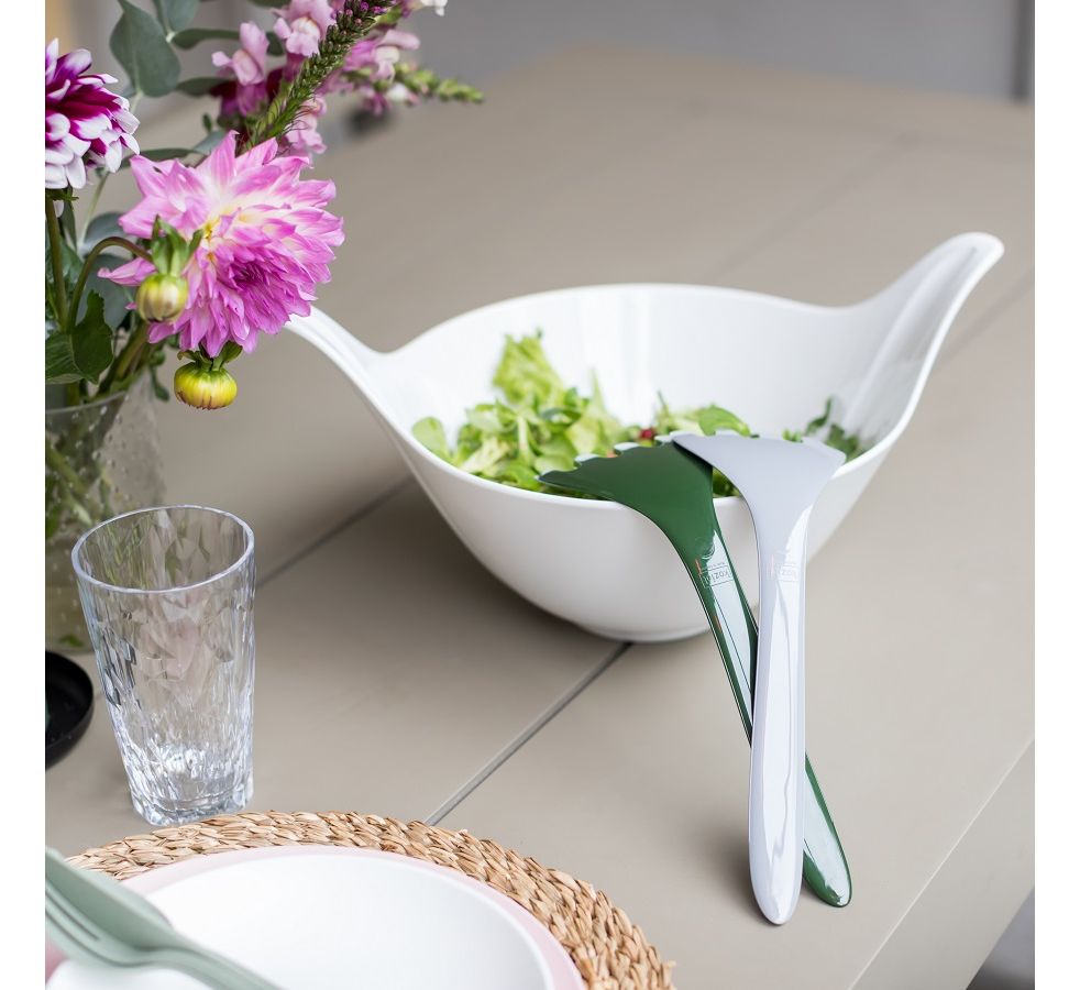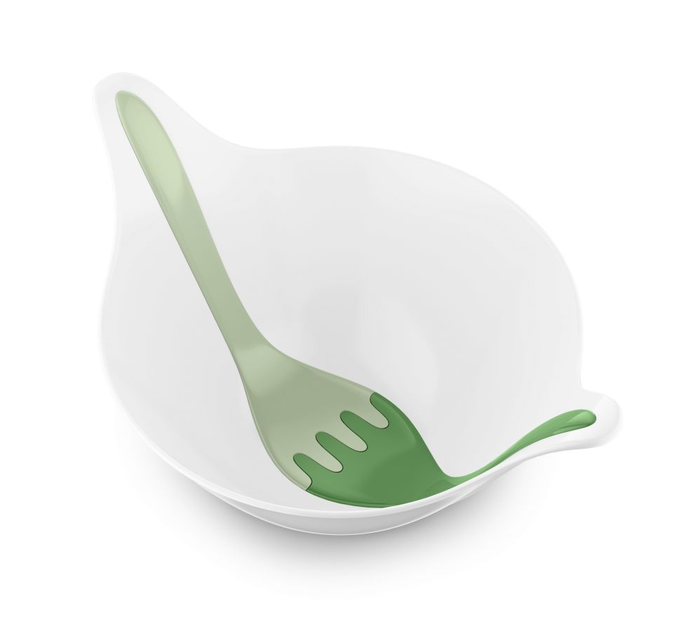 Салатник с приборами Leaf, 4 л, бело-зеленый, Koziol