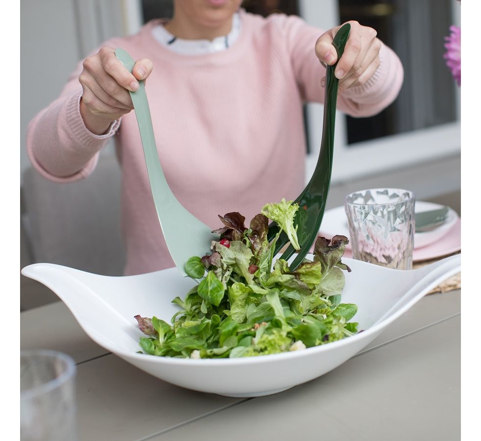 Салатник с приборами Leaf L+, – это универсальная посуда, которой вы можете сервировать стол для обеда или ужина, взять с собой на дачу или пикник. Глубокая и компактная емкость дополнена изогнутыми по форме ее чаши ложками для перемешивания салатов. Эту элегантную и стильную посуду можно мыть в посудомоечной машине.