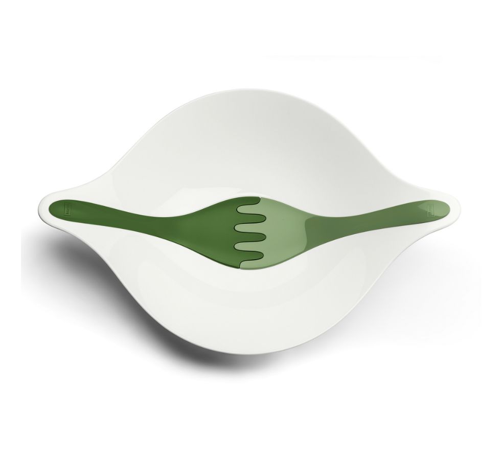 Салатник с приборами Leaf, 3 л, бело-зеленый, Koziol