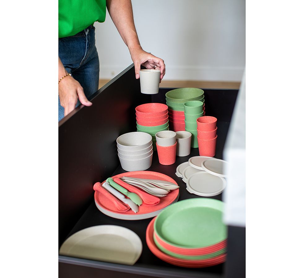 Можно мыть в посудомоечной машине без использования агрессивных средств и нейтрализатооов запаха: они вызывают обесцвечивание пластика. Если размер позволяет, лучше размещать в верхней секции. Даже если пластик помялся в процессе мытья, через время он восстановит форму. Такие продукты, как помидоры, морковь, яйца, шпинат, черника и свекла могут окрашивать воду в посудомойке и вызывать изменение цвета изделия. Чтобы избежать этого, рекомендуется ополаскивать его перед тем, как загружать в посудомойку. Избавиться от пятен можно, подвергнув изделие воздействию света.
