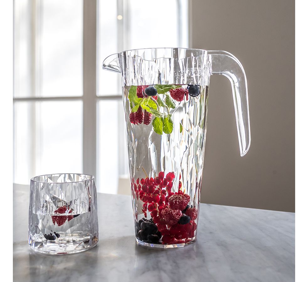 Коллекцию Club высоко оценят любители , ,шумных вечеринок, семейных застолий и встреч с друзьями: такая сверхлегкая и ударопрочная посуда специально создана для удобной эксплуатации, а прозрачный кристальный дизайн - для бесконечного веселья. Для изготовления кувшина мастера Koziol используют сверхпрочный материал Superglas, который не содержит бисфенол-А и меламин.