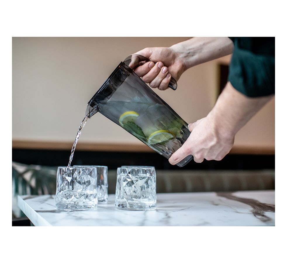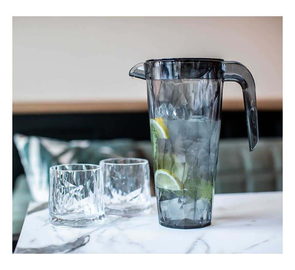 Коллекцию Club высоко оценят любители , ,шумных вечеринок, семейных застолий и встреч с друзьями: такая сверхлегкая и ударопрочная посуда специально создана для удобной эксплуатации, а прозрачный кристальный дизайн - для бесконечного веселья. Для изготовления кувшина мастера Koziol используют сверхпрочный материал Superglas, который не содержит бисфенол-А и меламин.