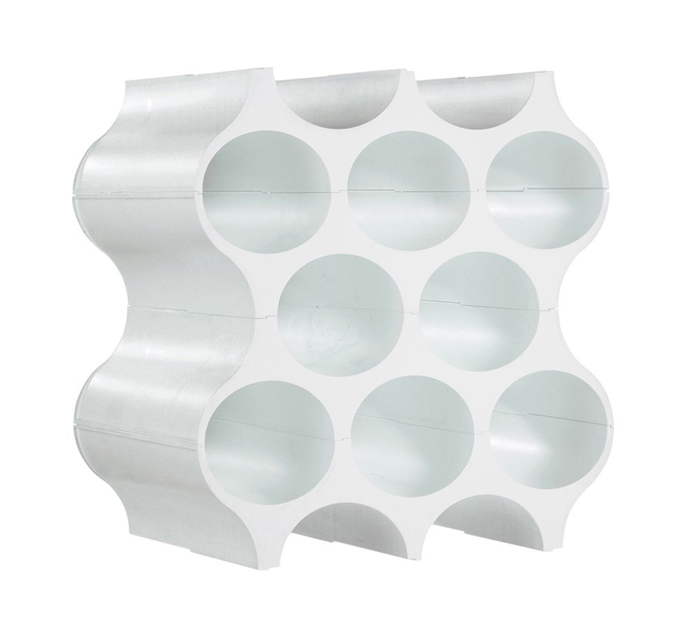 Подставка для бутылок Set-Up имеет разборную конструкцию - из нескольких наборов можно построить целую стену, и она будет служить стильным разделителем пространства в комнате. Устойчивый каркас напоминает пчелиные соты, в которых все бутылки будут в безопасности. Кроме того, внутри можно хранить свернутые журналы и газеты.