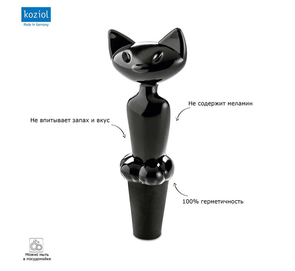 Пробка для бутылки Miaou, черная, Koziol