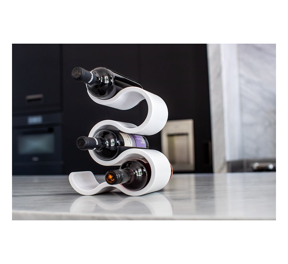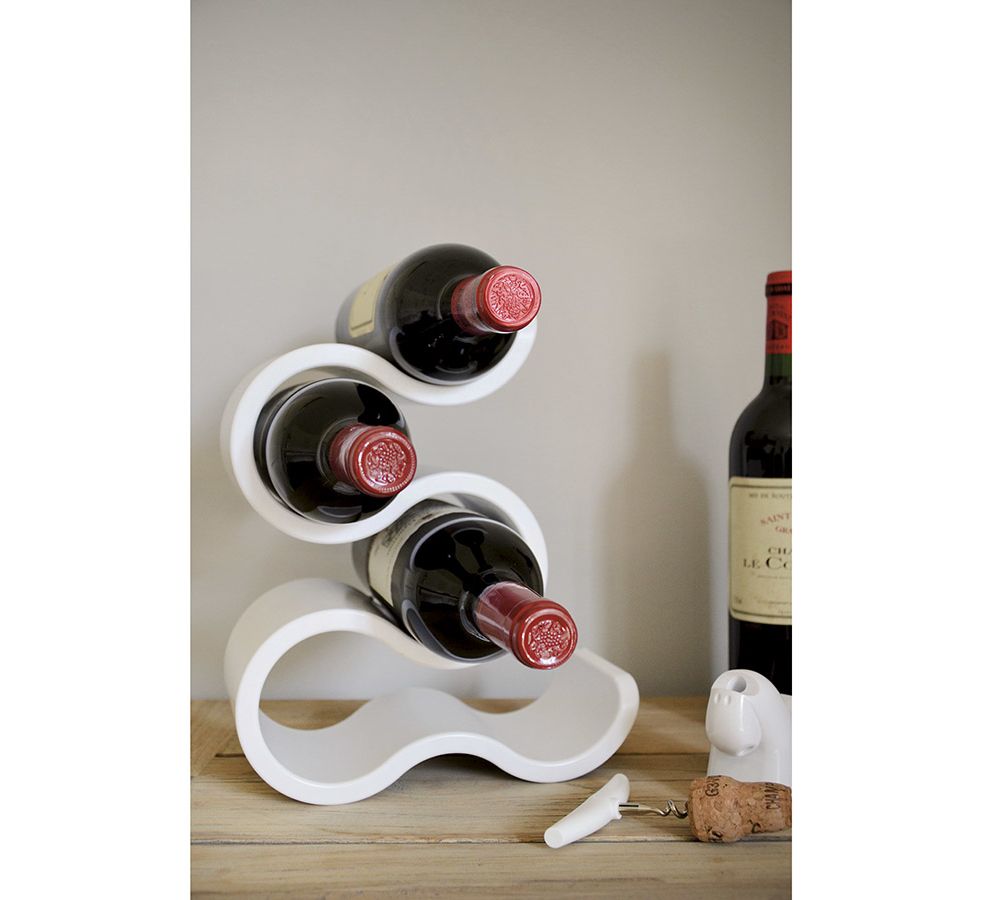 Подставка вмещает до пяти бутылок. Изделие отличается устойчивостью и компакностью, так что оно будет хорошо смотреться даже на небольшой кухне.