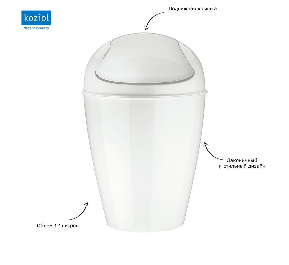 Корзина для мусора с крышкой Del, 12 л, белая, Koziol