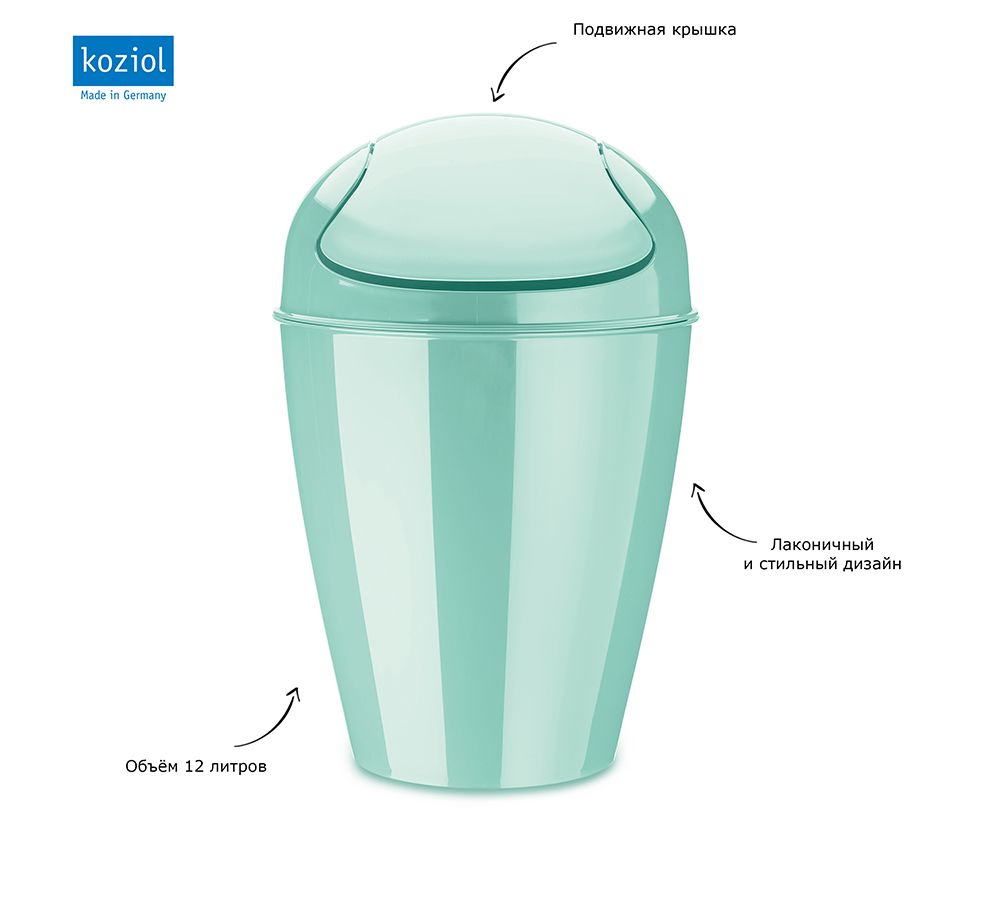 Корзина для мусора с крышкой Del, 12 л, мятная, Koziol