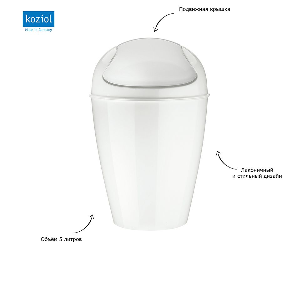 Корзина для мусора с крышкой Del, 5 л, белая, Koziol