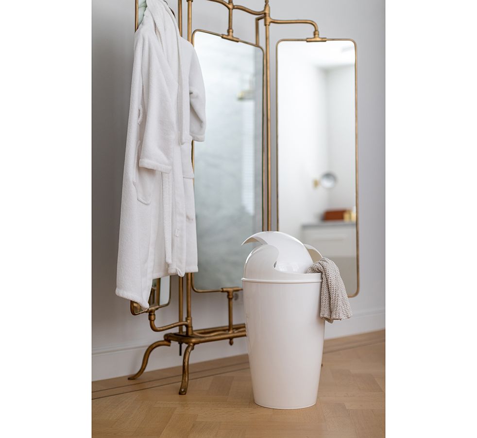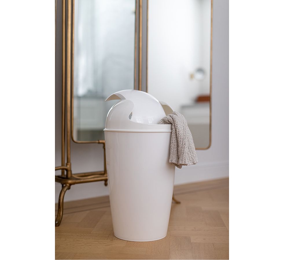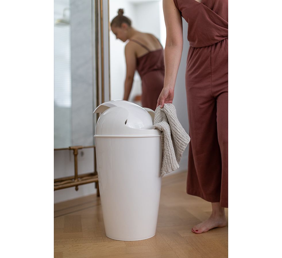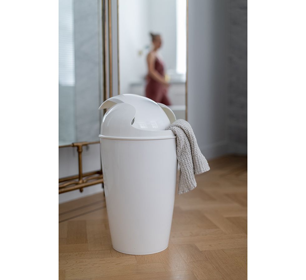 Вместительная корзина для мусора Del поможет навести порядок на кухне и в ванной. Емкость из переработанного полипропилена приятного молочного оттенка отличается лаконичным дизайном и устойчивостью к износу. Практичный материал обеспечивает изделию долговечность, легко очищается от всевозможных загрязнений. Модель с поворотной крышкой удобная в использовании.