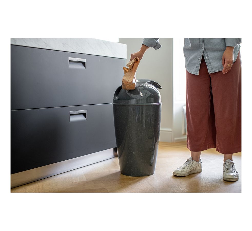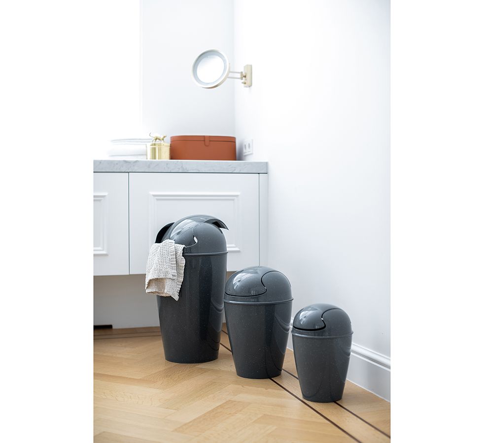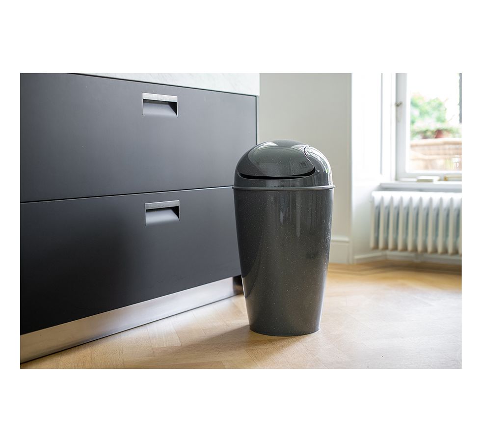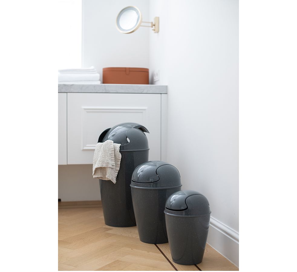 Вместительная корзина для мусора Del поможет навести порядок на кухне и в ванной. Емкость из переработанного полипропилена темно-серого цвета отличается лаконичным дизайном и устойчивостью к износу. Практичный материал обеспечивает изделию долговечность, легко очищается от всевозможных загрязнений. Модель с поворотной крышкой удобная в использовании.
