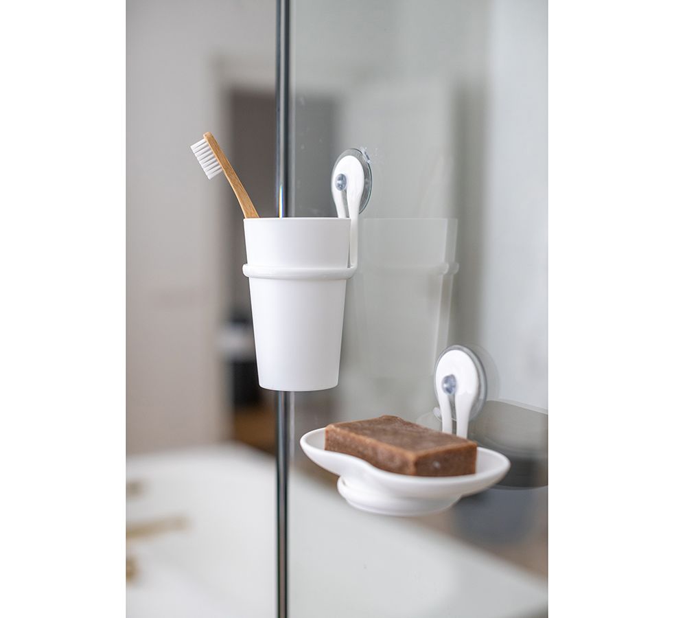 Мыльница предусматривает отверстие для сбора воды, которое можно опорожнить, раскрутив крышку снизу. Изделие крепится к стене на присоску, которая входит в комплект. Мыльница легко снимается с держателя.