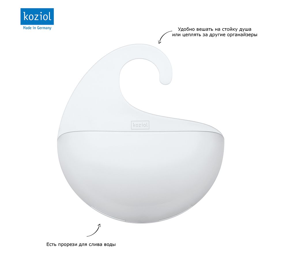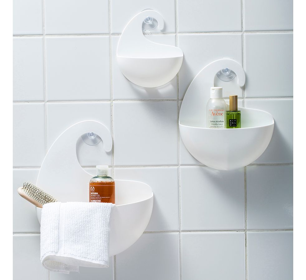Органайзер Surf с крючком в виде волны можно повесить на стойку душа или кран. Прорези на дне выполняют несколько функций: не дают воде застаиваться и позволяют цеплять органайзеры друг за друга.