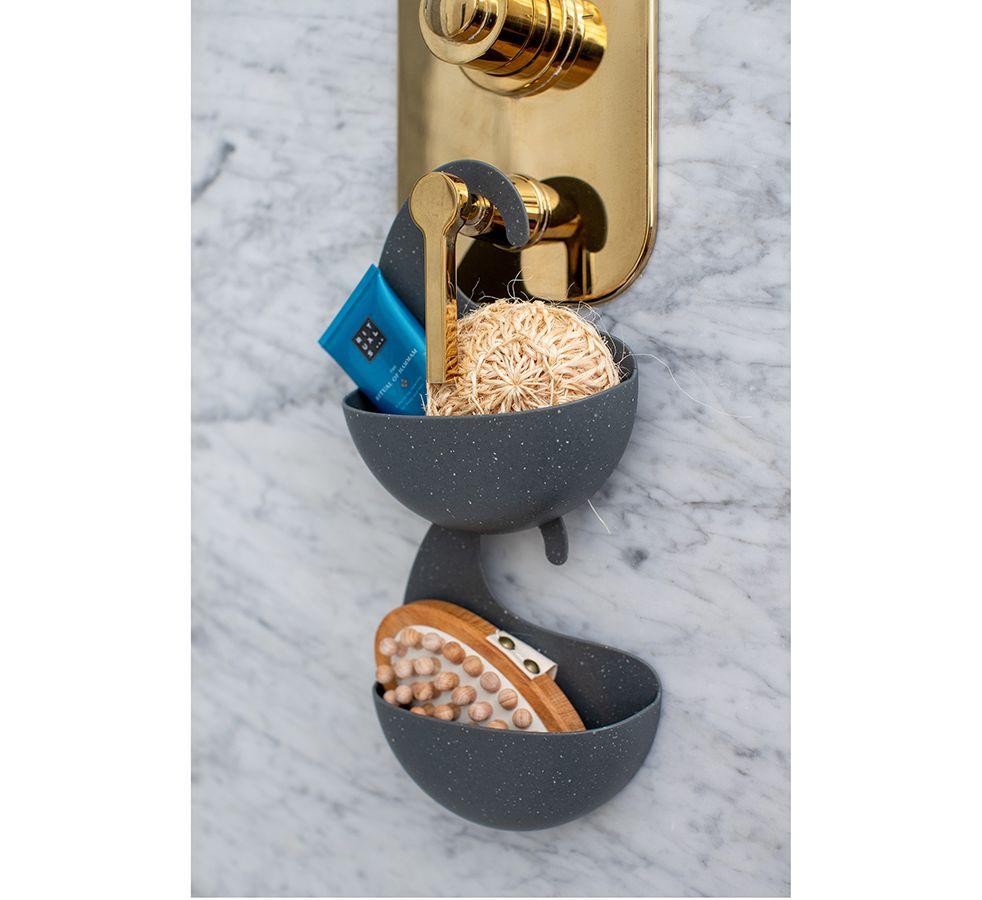 Изделие с крючком , ,можно повесить на стойку душа или кран. Прорези на дне не дают воде застаиваться и позволяют цеплять органайзеры друг за друга. Изделие выполнено из переработанного полипропилена.